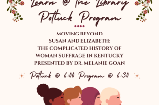 Moving Beyond Susan and Elizabeth: The Complicated History of Woman Suffrage in Kentucky. Presented by Dr. Melanie Goan. Space is limited, please register online.