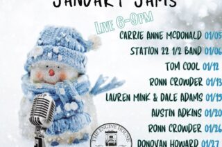 Shake off those winter blues this January with excellent music every Friday and Saturday, 6-9pm! Carrie Anne McDonald-Music Station 22 ½ Tom Cool Yolton Ronn Crowder, Musician Lauren Mink Dale Adams Austin Adkins Donovan Howard Music